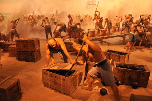 鴉片戰爭博物館展品虎門銷煙,表現了中國人民維護民族尊嚴、反抗外國侵略的愛國精神和英雄氣概。在中國人民革命勝利后,虎門銷煙的壯觀場面銘刻在北京天安門廣場的人民英雄紀念碑上。