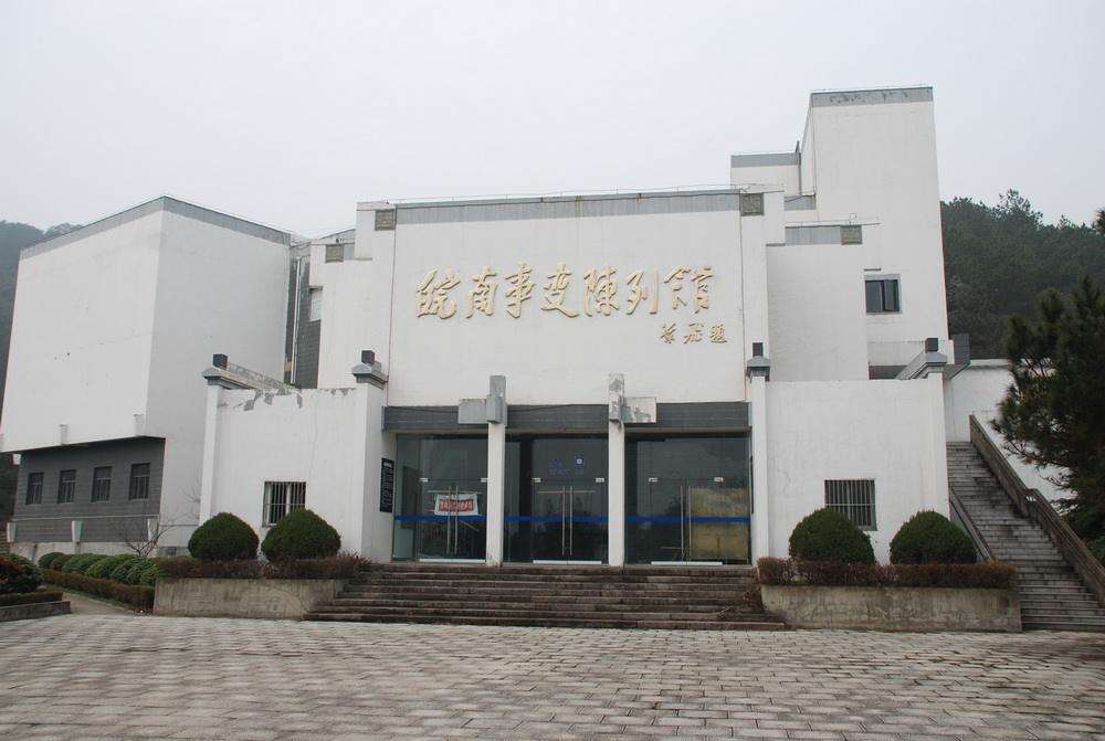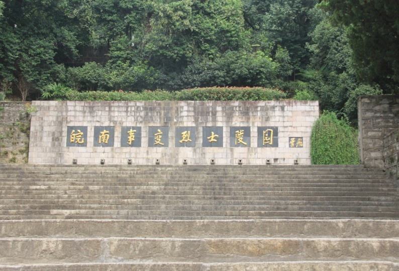皖南事變烈士陵園位于涇縣城郊的水西山,1990年初,為紀(jì)念皖南事變新四軍將士殉難五十周年而建。陵園由入口紀(jì)念碑、主題廣場、主碑紀(jì)念廣場、無名英雄烈士墓四大部分,配以皖南事變陳列館組合而成,每一個臺階、柱子的長度、高度都有寓意,標(biāo)志著皖南事變中的具體事件。整個陵園的氛圍莊嚴(yán)肅穆,是緬懷先烈和對青少年進(jìn)行愛國主義教育的地方。陵園的第一部分即入口建有皖南特色的石闕。進(jìn)入陵園后,沿臺階向上三十米,是第二部分主題廣場,正對面的墻上鑲嵌著葉飛題寫的“皖南事變烈士陵園”字碑。