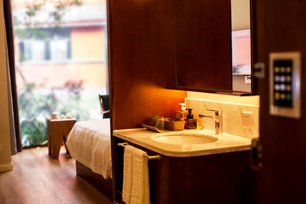 酒店為慢爵士風設計風格,沉靜、簡約、富于質感、充滿情調,滿眼都是設計師定制家具、原創畫作、藝術作品、綠植園藝、名家茶器等。