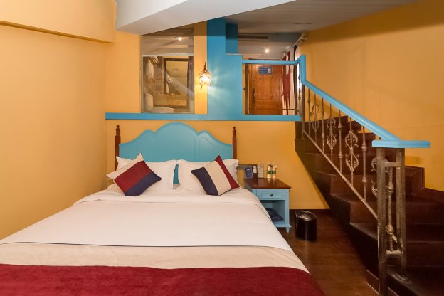 酒店有三十余間客房定位為清新淡雅的新中式,而剩下的十余間客房則選擇了當(dāng)下較為流行的地中海、美式鄉(xiāng)村、復(fù)古英倫風(fēng)。