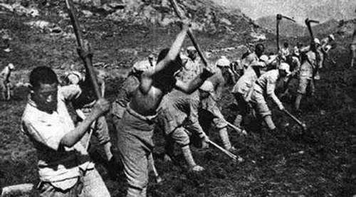 沒有房子住,戰士們先是露營,在用樹枝搭起的簡陋帳篷里住,遇到雨天衣服被子被淋濕,就燒火取暖,后搭草棚、打窯洞,解決了住的問題;糧食不夠吃,就在飯里摻黑豆和榆樹錢,旅團首長帶頭,冒著風雪嚴寒,到百里以外的延長等地去背糧;沒有菜吃,戰士們到山里挖野菜,找榆樹皮,收野雞蛋,打獵,下河摸魚;沒有燒的,戰士們就打柴燒木炭;穿的很困難,每個戰士一年只發一套軍衣,平時就縫縫補補,夏天光著膀子開荒、種地、打場,長褲改短褲,短褲改褲衩,磨破褲衩的布條打成草鞋,絕不浪費;沒有生產工具,他們自己制造;沒有耕牛,就用镢頭;沒有燈油,就用松樹明子,或者把樺樹皮卷成筒當燈點;缺少學習用具,就用樺樹皮當紙,用炭當筆;沒有擦槍油,就采集野杏仁榨油代替。部隊在困難的時候,節衣縮食;在生產自給有余的時候,仍然勤儉節約,艱苦奮斗。旅首長曾向全旅發出號召:“生產要多,消費要省。”1942年以后,部隊已經達到了糧食自給,還是將瓜菜、紅薯、山藥蛋等摻和在糧食里做“八寶飯”吃,而且每天仍然堅持吃兩干一稀。從1941年起,部隊基本上沒有向上級領過被子。戰士們被子里的棉絮,早就滾成一團團的疙瘩了,可是發下新被子時,戰士們誰也不肯要,說:“哪天不打敗日本鬼子,哪天就不換被子。”在短短的三年內,三五九旅發揚“自力更生,艱苦奮斗”的革命精神,把荊棘遍野、荒無人煙的南泥灣變成了“處處是莊稼,遍地是牛羊”的陜北好江南。